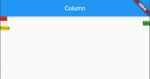 두번째 Text의 위치가 오른쪽인 이유는 stretch를 통해 화면 전체로 Column의 폭을 늘리고 Text의 TextAlign값을 end로 설정하였기 때문이다.