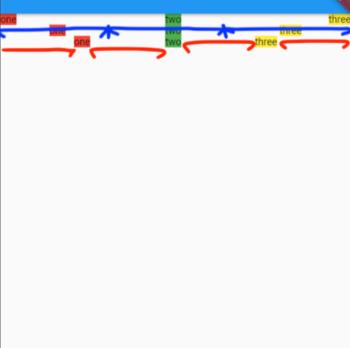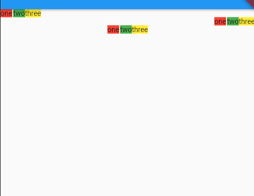 Row의 spaceBetween, spaceAround, spaceEvenly 순서대로 표현한 widget 이다.