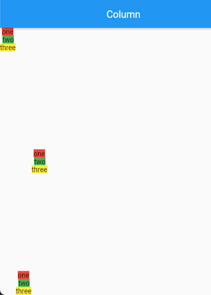 crossAxisAlignment 속성값이 다음과 같이 적용된다.